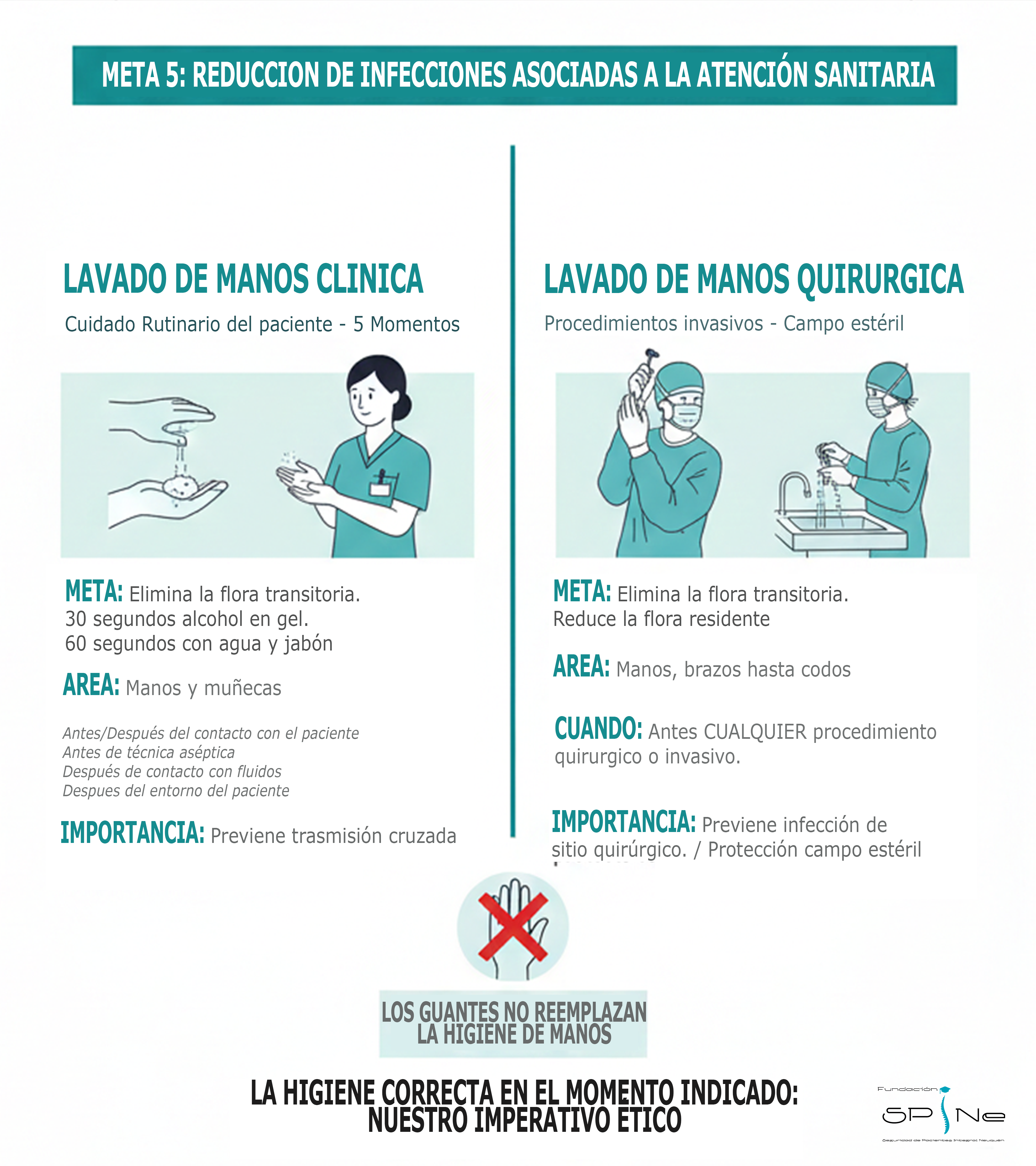 La Meta Internacional N° 5 de Seguridad del Paciente no es una meta singular, sino un mosaico de prácticas que, aplicadas correctamente, construyen una red impenetrable de protección. La higiene de manos clínica es nuestro baluarte diario contra la IAAS común. La higiene de manos quirúrgica es la fortaleza avanzada que defiende nuestros procedimientos más vulnerables.